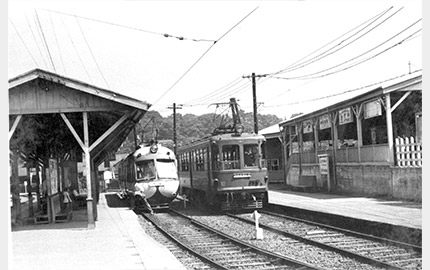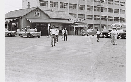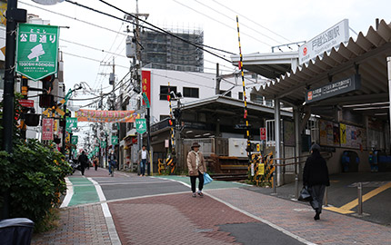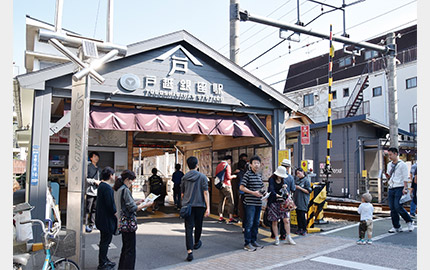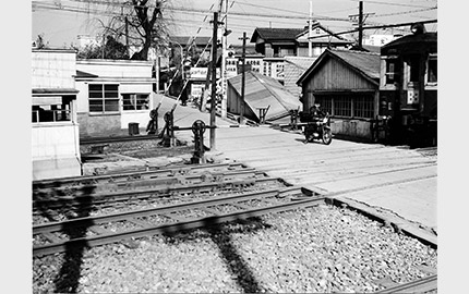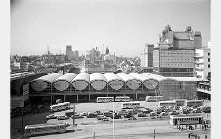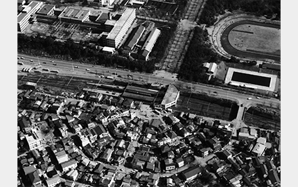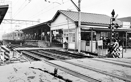 東京オリンピックの年にリニューアルした駅舎は、大らかな曲線を描く「かまぼこ屋根」で親しまれた。高架下は、国道246号線が走り抜ける。