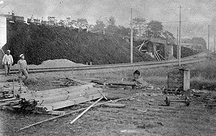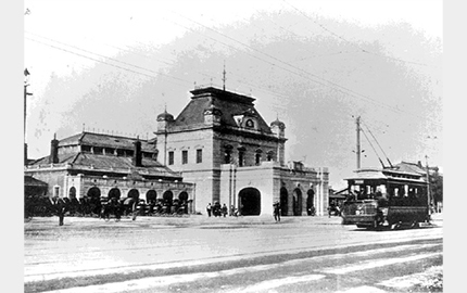 渋谷はその名前が示すとおり、武蔵野台地を流れるかつての隠田川(渋谷)と宇田川の合流地点にある「谷」にできた街。江戸時代には、庶民の信仰と行楽の地で知られた丹沢(神奈川県伊勢原市・秦野市)の「大山詣り」へ向かう大山街道沿いの集落として栄えていた。1885 (明治18)年には現在のJR山手線の原型となった日本鉄道品川線の開業ともに渋谷駅(渋谷停車場)が開設。かつてのJR 埼京線ホームの場所にあり、1日の利用者は十数人と少なかったという。その後、玉川電気鉄道玉川線(後の田園都市線の一部)や東京市電(後の都電)が開通し、現在のターミナル拠点の原型が生まれた。