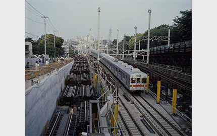1964(昭和39)年の完成間近の東急東横線渋谷駅